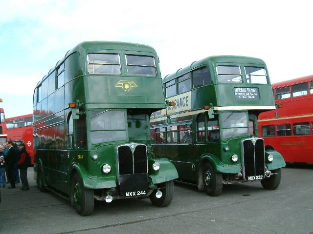 ex RLH 44. MXX 244. Seen alongside RLH 32. MXX 232 at a windswept Wisley