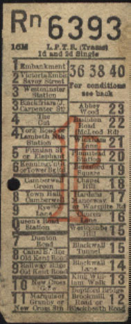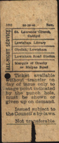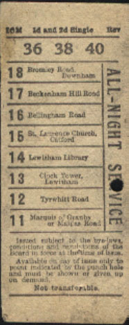 | London Passenger Transport Board (LPTB) geographic tickets for the same services. Also shown are all night services on the rear. |