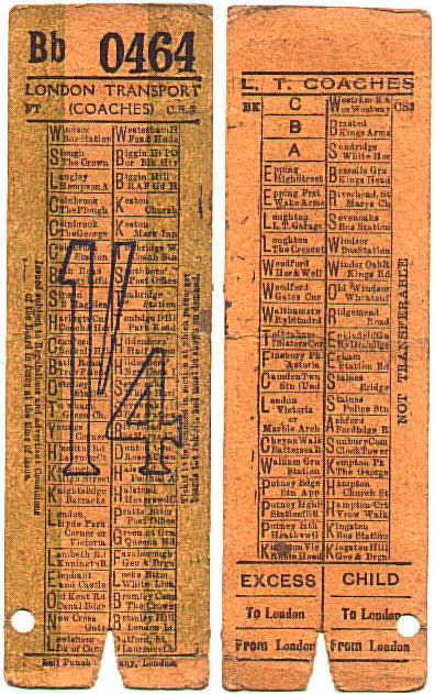 | Ticket for London Transport Coaches, Greenline. coaches were long routes,