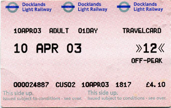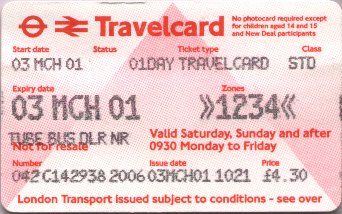 Left is a travelcard issued at a retail outlet for zones Bottom left is a travel card issued by National Rail Bottom right issued by the Docklands Light Railway. |