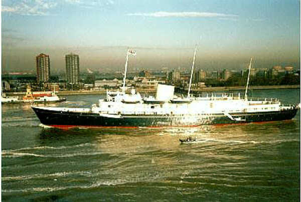 of The Royal Yacht Britannia on its final journey to the Pool of London